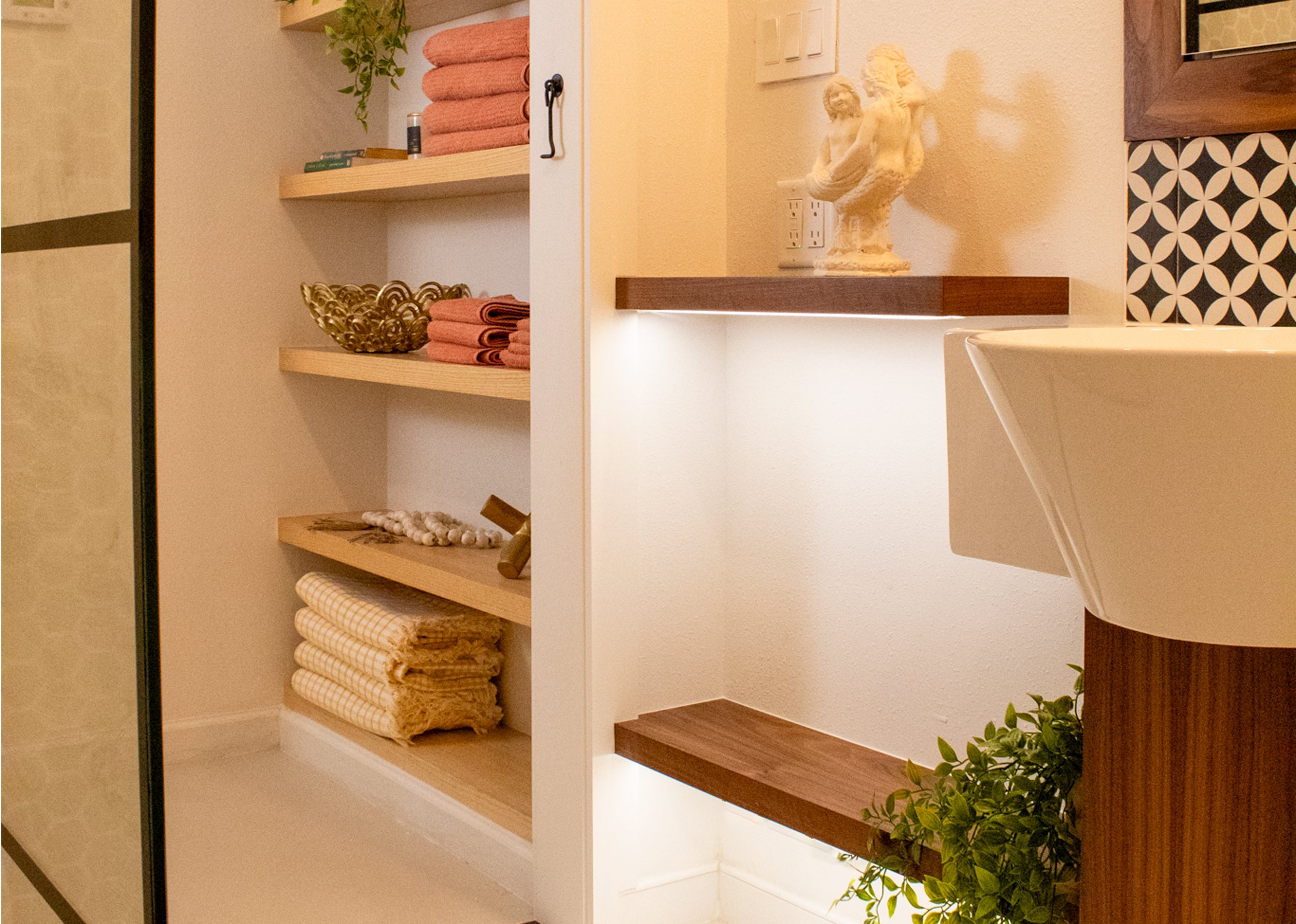 While we don’t sell lighting directly, we will prepare your shelves either for puck lights or LED strips