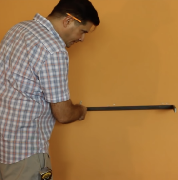 Position the top of the steel on the wall 3/8” below the top of the desired shelf height and 1 1/2” in from ends. Mark the steel at each stud location.