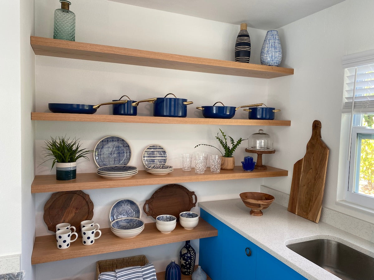 Break free of closed cabinetry and make your kitchen your own, our custom floating shelves are the perfect opportunity to display some of your favourite collected items, to your every-day go-to coffee mugs and dinnerware.
