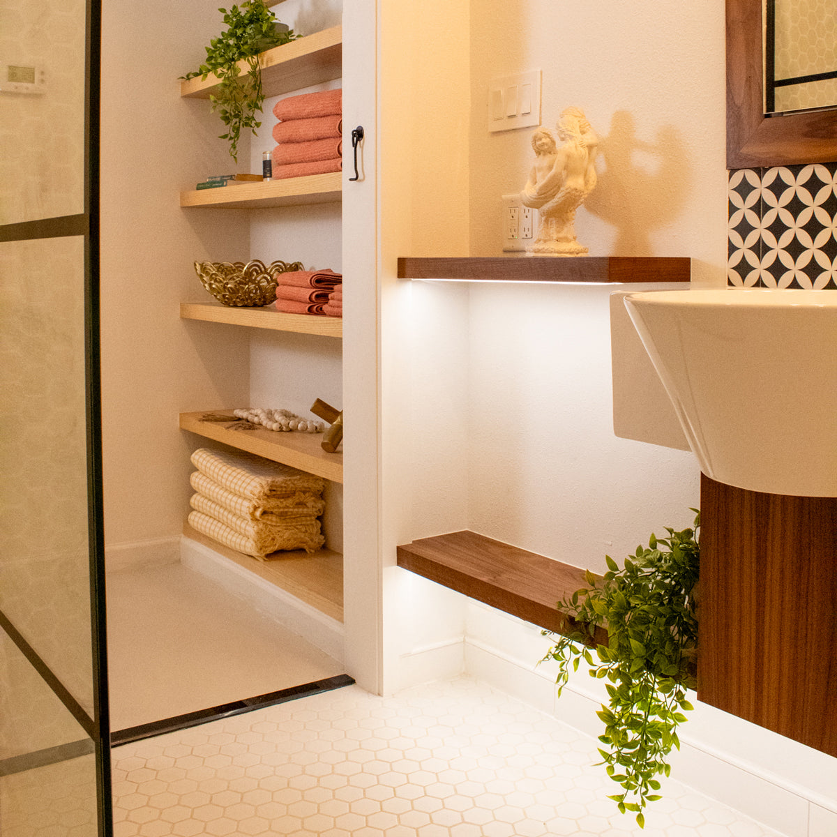 Break free of closed cabinetry and make your kitchen your own, our custom floating shelves are the perfect opportunity to display some of your favourite collected items, to your every-day go-to coffee mugs and dinnerware.